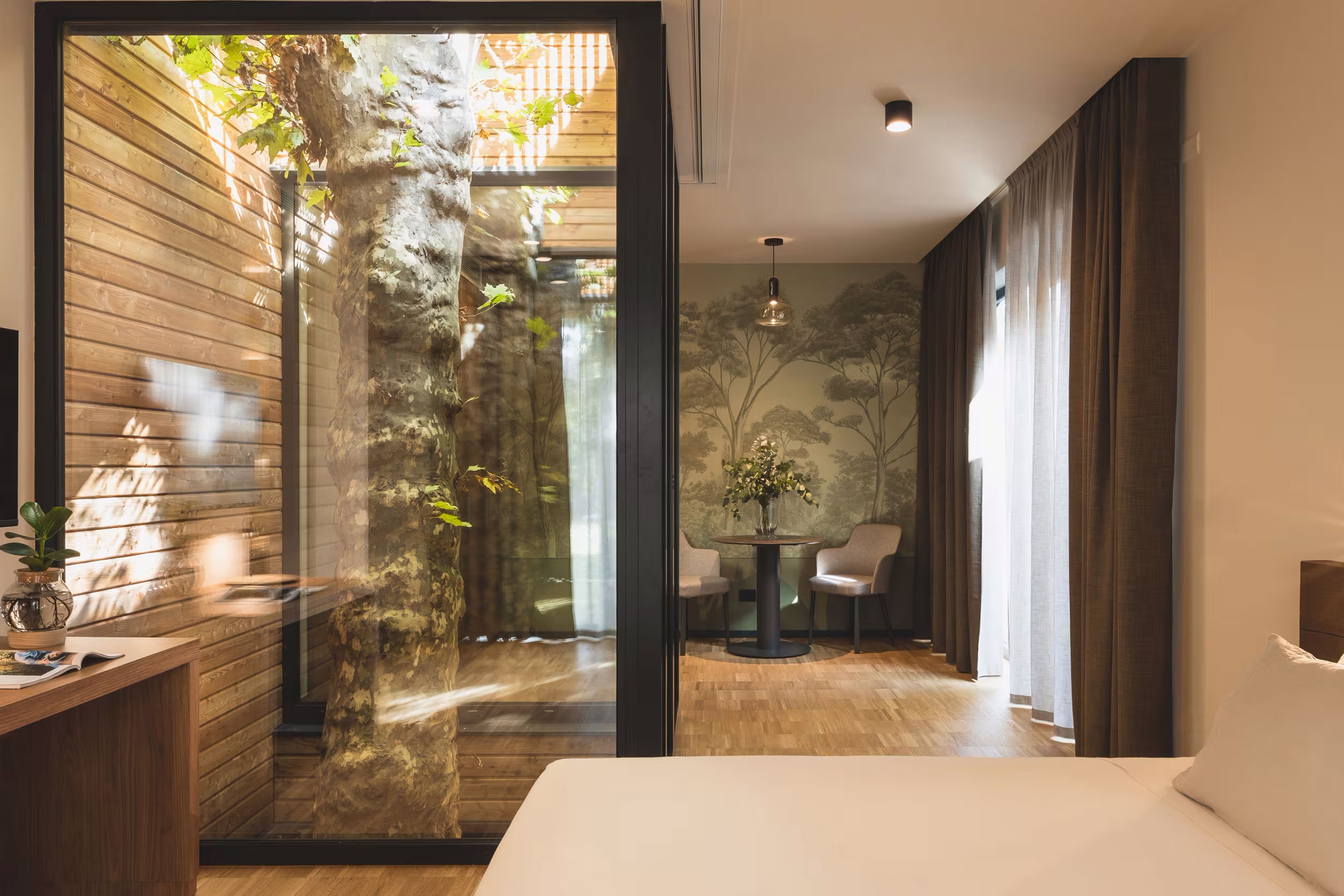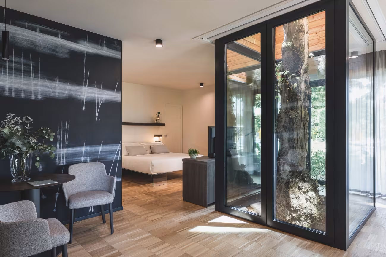 ✔️ Visuelle Integration – Ähnlich einer luxuriösen Lodge, die natürliche Elemente perfekt in die Raumgestaltung integriert